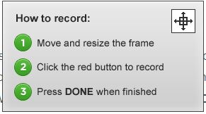 - You’ll get a prompt on How to Record that will look like the image below. This also are the 3 step directions on how to record.
