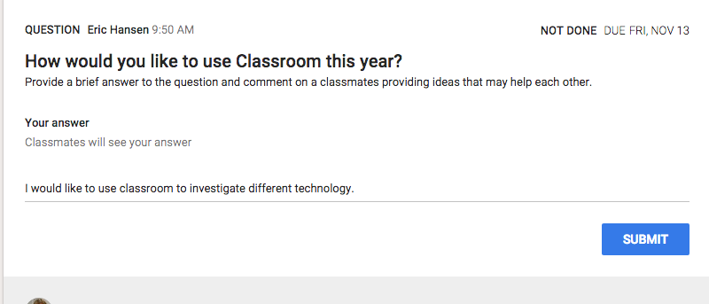 Use as a discussion board: teacher asks question students respond and respond to each others