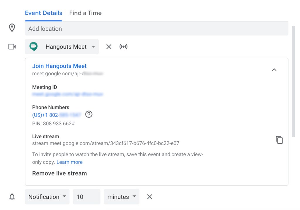 - Click Add Conferencing and select Hangouts Meet